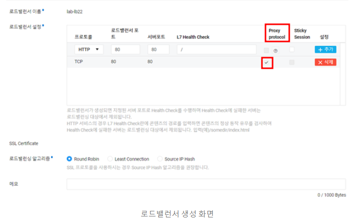 ★ 주의할 점은 Proxy Protocol 을 사용하기 위해서는 반드시 TCP나 SSL 프로토콜을 선택해 주어야 한다.