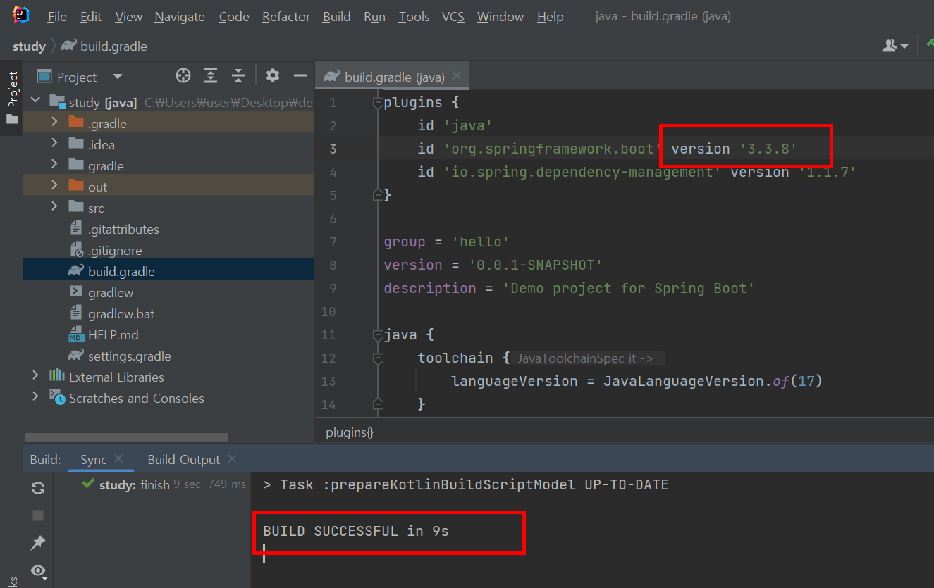 ****내가 설정한 JAVA17버전으로 스프링부트 돌리려면 Springboot version 3.2.x 또는 3.3.x 버전으로 낮춰야 한다.****