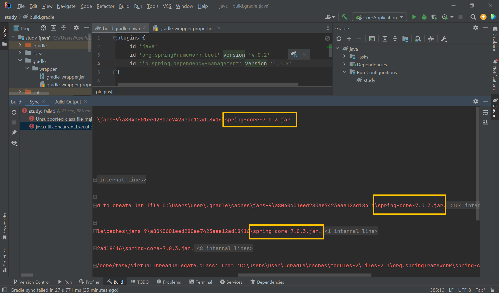 Java 17을 쓰려면 Gradle 7.3 이상이 필요